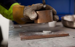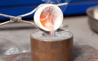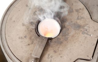 Die Zusammensetzung von Kleinteilen, Spänen und Staub können wir durch Schmelzproben in unserer Vakuum-Schmelzanlage präzise und effizient bestimmen. Dabei wird das Material bei Temperaturen bis zu 2000 °C zu einer homogenen Probe geschmolzen. Durch Aufbau eines Magnetfeldes wird das Schmelzgut gründlich durchmischt – eine wichtige Voraussetzung für präzise Analysen.